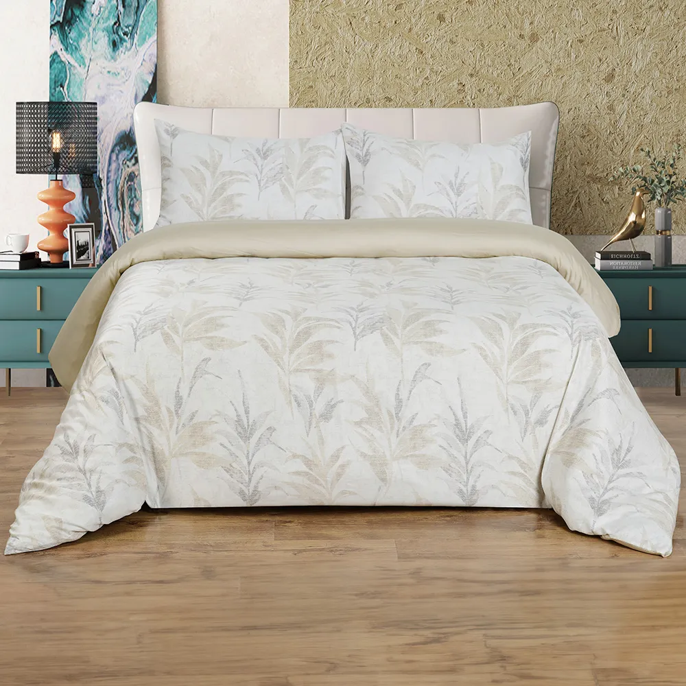 استمتع بالرّاحة المتجدّدة باختيارِك كيس الحاف من القطن المصريّ والسّاتين. يضمن لك كيس اللحاف المصنوع من القطن المصريّ ۱۰۰% الرّاحة طوال السّنة، ويحوّل سريرك إلى ملاذ للسّكينة. يُعدّ القطن المصريّ، المعروف بجَوْدته الاستثنائيّة، من بين أفضل أنواع القطن في العالم. وإلى جانب نعومته الفخمة، فإنّ أليافه طّويلة التّيلة تضمن المتانة الدّائمة، حيث إنّها تقاوم التّمزّق والتّكتّل. يتميّز كيس لحاف انڤر بمزيج متناغم بين سحر الطّبيعة والدّفء المريح. حيثُ تجمع النّقوش النّباتيّة هادئة اللّون بين سحر الطّبيعة الخارجيّة و دفء المنزل، لتخلقَ ملاذاً هادئاً في غرفة نومك.