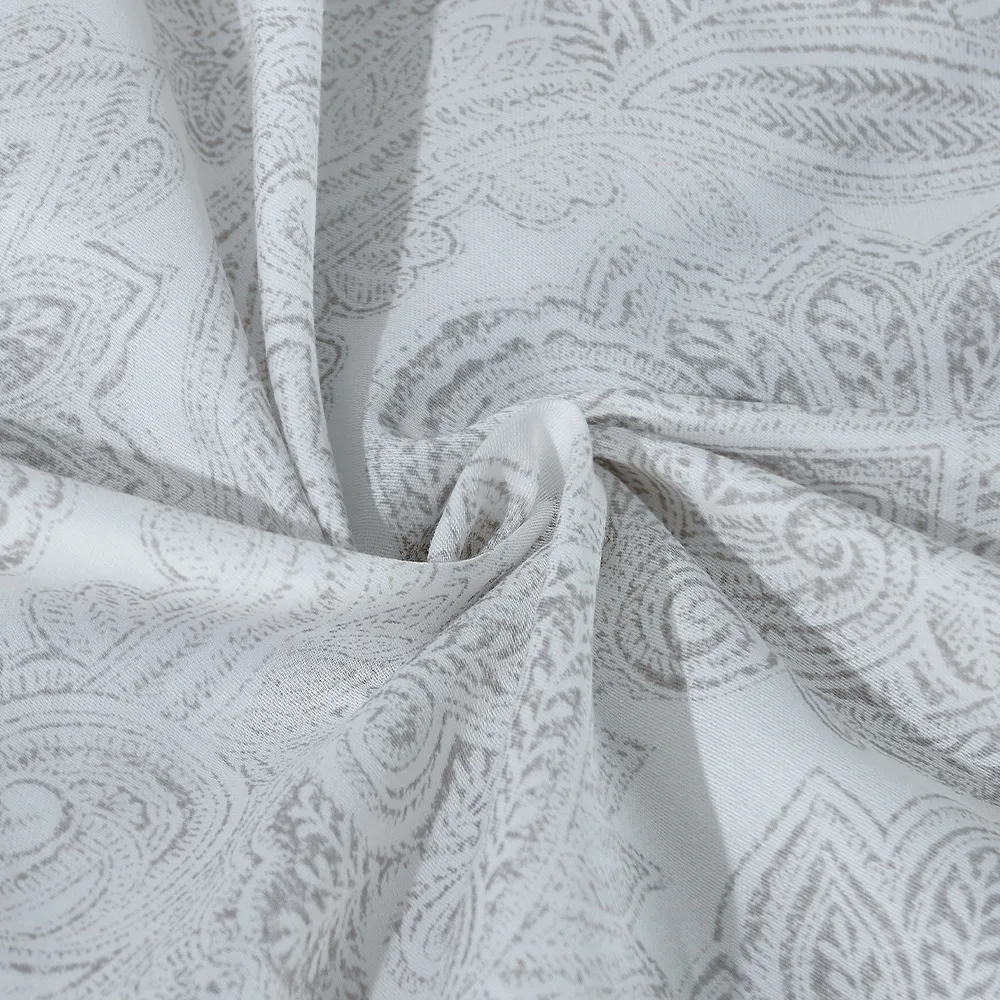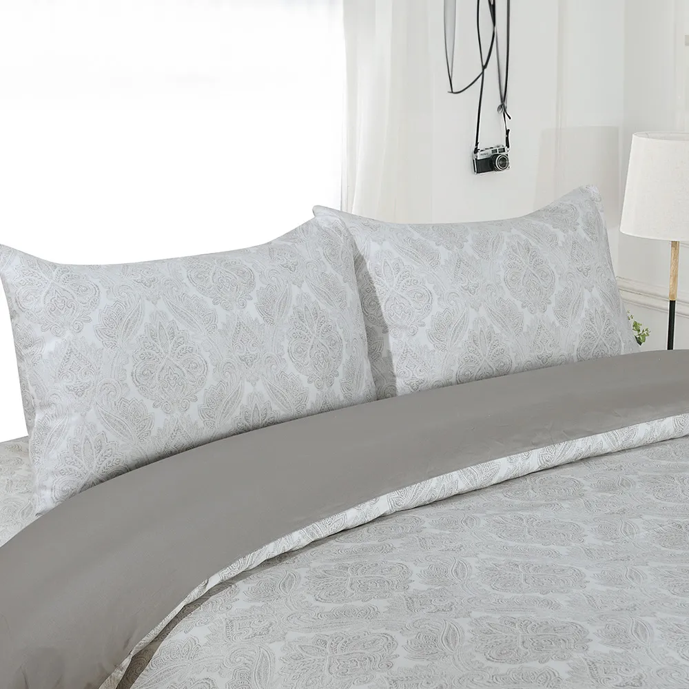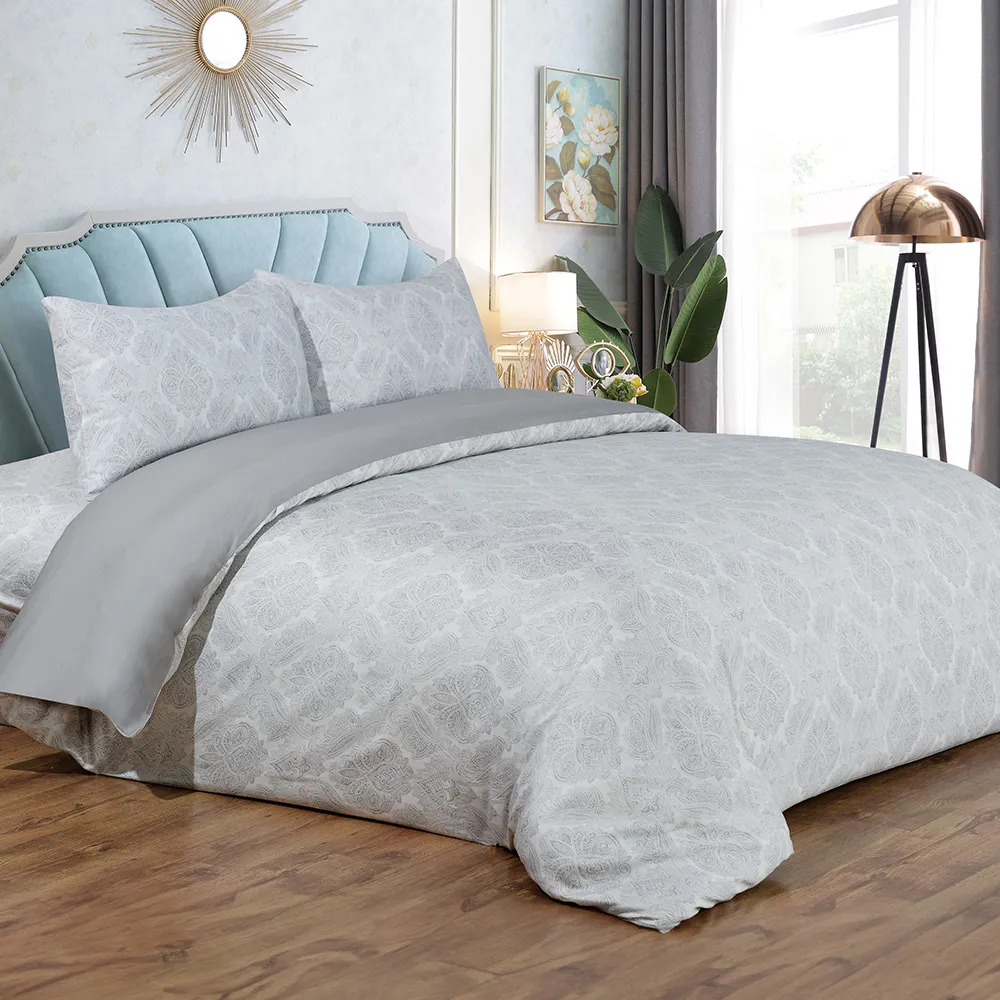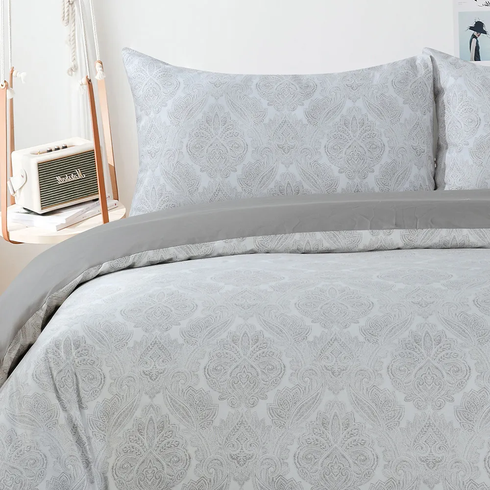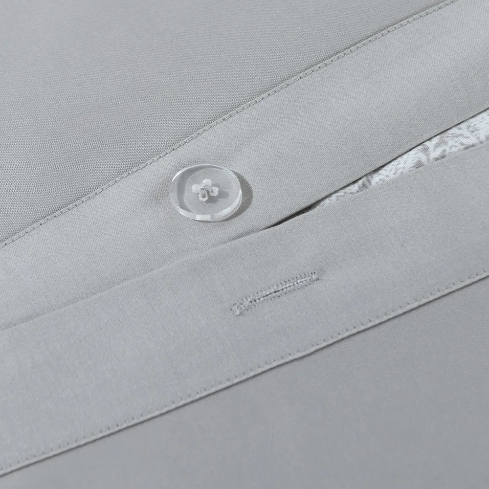 استمتع بالرّاحة المتجدّدة باختيارِك كيس لحاف من القطن المصريّ والسّاتين. يضمن لك كيس اللحاف المصنوع من القطن المصريّ ۱۰۰% الرّاحة طوال السّنة، ويحوّل سريرك إلى ملاذ للسّكينة. يُعدّ القطن المصريّ، المعروف بجَوْدته الاستثنائيّة، من بين أفضل أنواع القطن في العالم. وإلى جانب نعومته الفخمة، فإنّ أليافه طّويلة التّيلة تضمن المتانة الدّائمة، حيث إنّها تقاوم التّمزّق والتّكتّل. دلّلْ نفسك واستمتعْ بالأناقة الّتي يقدّمها لك كيس لحاف بيلسو، حيث يتميّز بتصميم راقٍ مظلّلٍ باللّون الرّماديّ ونمط تصميم خالد يضيف لمسة من الفخامة إلى ملاذ نومك.