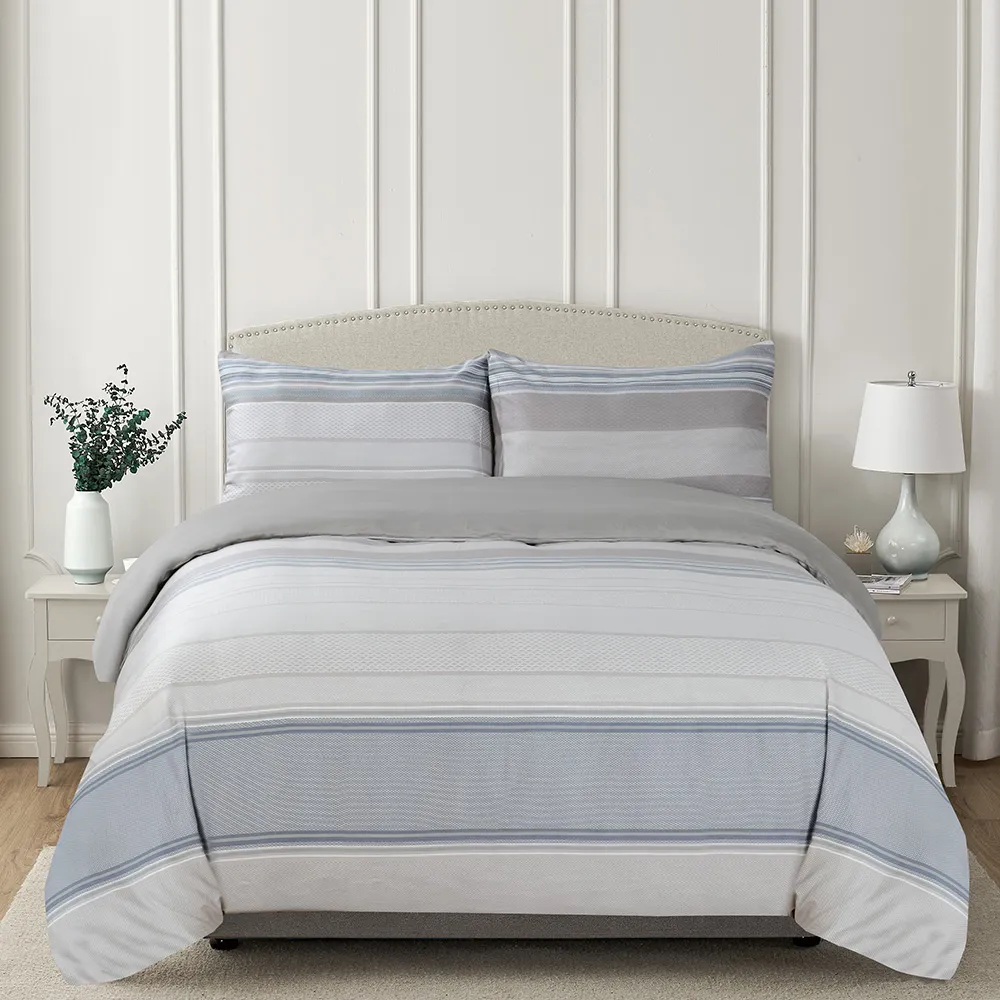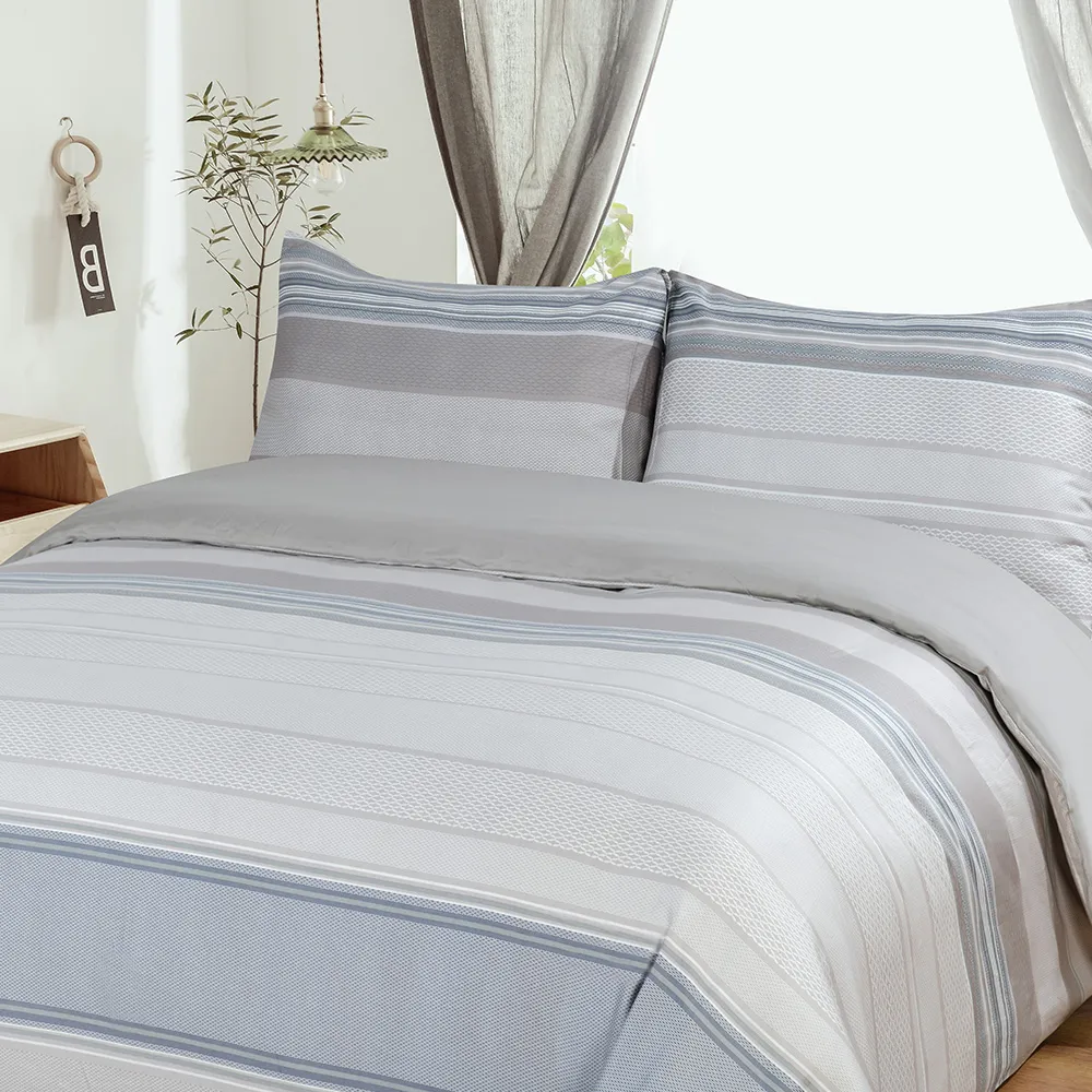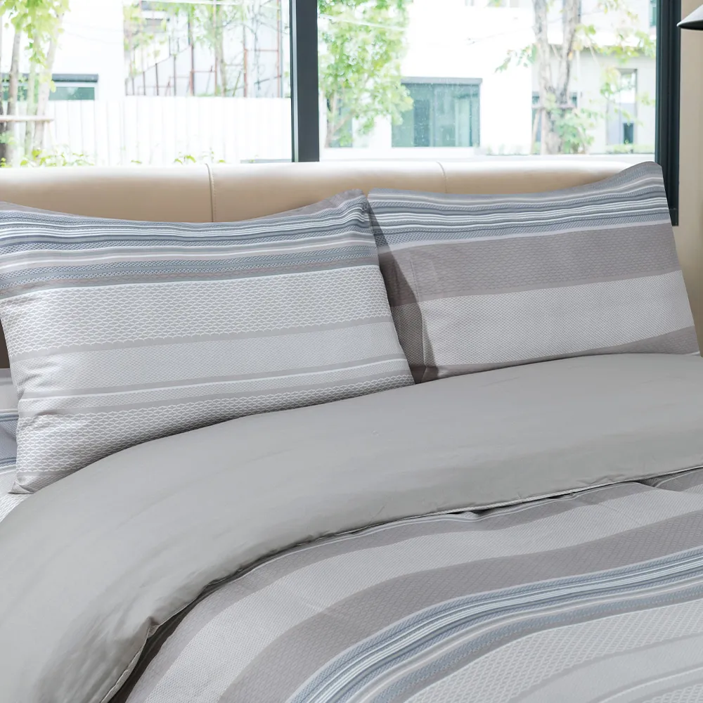 استمتع بالرّاحة المتجدّدة باختيارِك كيس لحاف من القطن المصريّ والسّاتين. يضمن لك كيس اللحاف المصنوع من القطن المصريّ ۱۰۰% الرّاحة طوال السّنة، ويحوّل سريرك إلى ملاذ للسّكينة. يُعدّ القطن المصريّ، المعروف بجَوْدته الاستثنائيّة، من بين أفضل أنواع القطن في العالم. وإلى جانب نعومته الفخمة، فإنّ أليافه طّويلة التّيلة تضمن المتانة الدّائمة، حيث إنّها تقاوم التّمزّق والتّكتّل. يمزج كيس لحاف سورينتو بشكل متناغم بين الألوان الهادئة بشكلِ خطوط أفقية. يستحضر هذا التّصميم لوحةَ ألوان مريحة وهادئة تذكّرنا بالسّكينة والصّفاء اللّذَين نجدهما في سماء الصّيف.