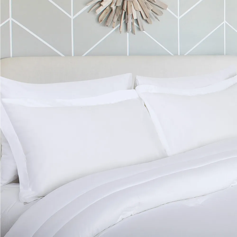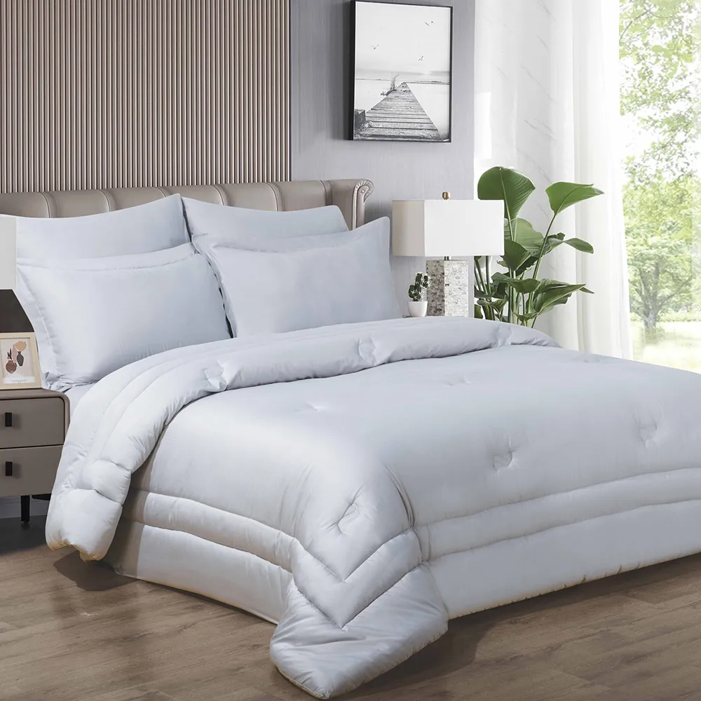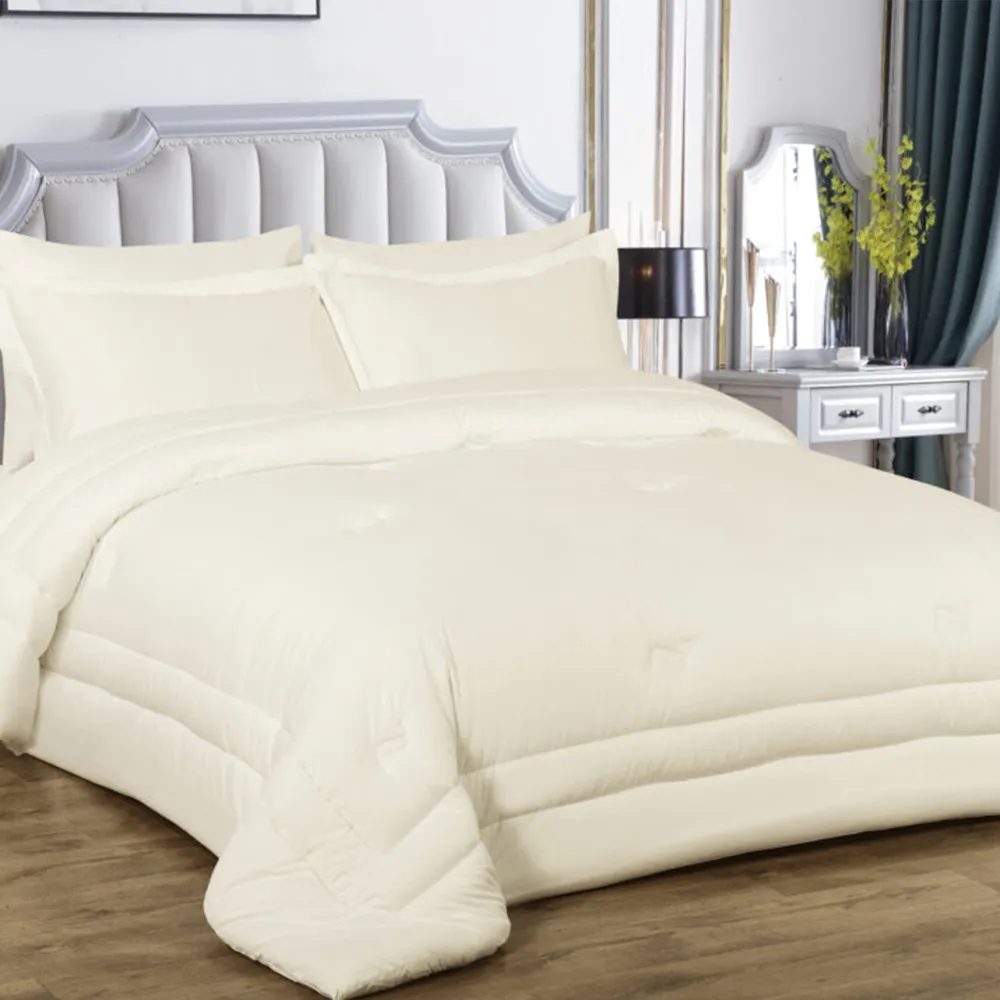 Immerse yourself in the rejuvenating comfort of our Plain Bamboo Cotton Sateen Comforter Set. This bamboo cotton comforter set keeps you comfortable year-round, transforming your bed into a haven of tranquility. Wake up feeling refreshed and enveloped in a cloud-like softness. The classic style adds a touch of charm and simple elegance to your room.