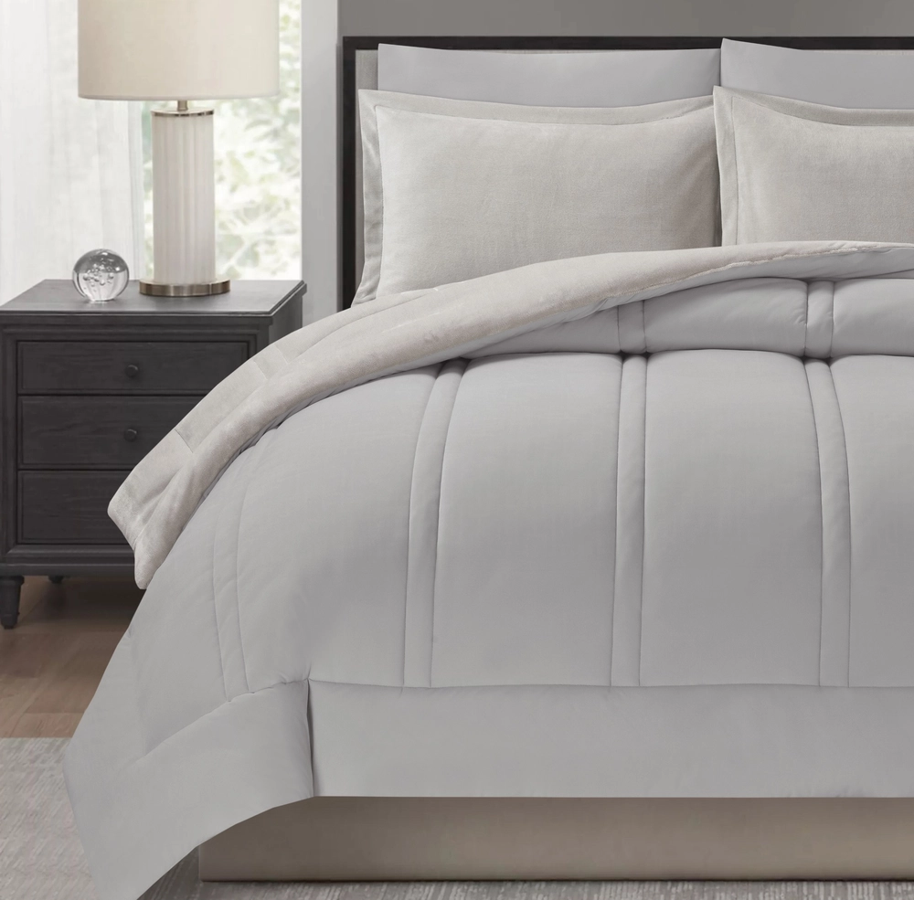 This comforter provides exceptional softness and warmth. Its design is ideal for layering and offers a gentle feeling against the skin.