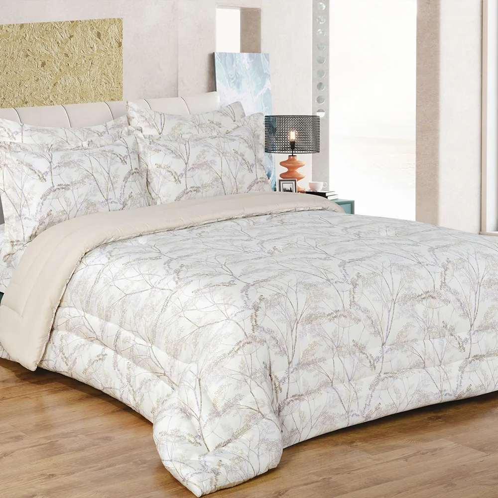 Immerse yourself in the rejuvenating comfort of our cotton sateen comforter set. This 100% Egyptian cotton comforter set keeps you comfortable year-round, transforming your bed into a haven of tranquility. Egyptian Cotton, renowned for its exceptional quality, is among the world’s finest. Beyond its sumptuous softness, its long-staple fibers ensure lasting durability, resisting tearing and piling. The Pampas set features a gracefully minimalist, nature-inspired design pattern that emanates a subtle ambiance. It creates a serene mood, inviting you to immerse yourself in a haven of comfort.